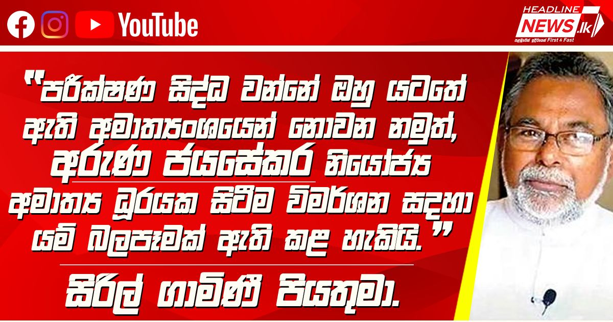 “පරීක්ෂණ සිද්ධ වන්නේ ඔහු යටතේ ඇති අමාත්යංශයෙන් නොවන නමුත්, අරුණ ජයසේකර නියෝජ්ය අමාත්ය