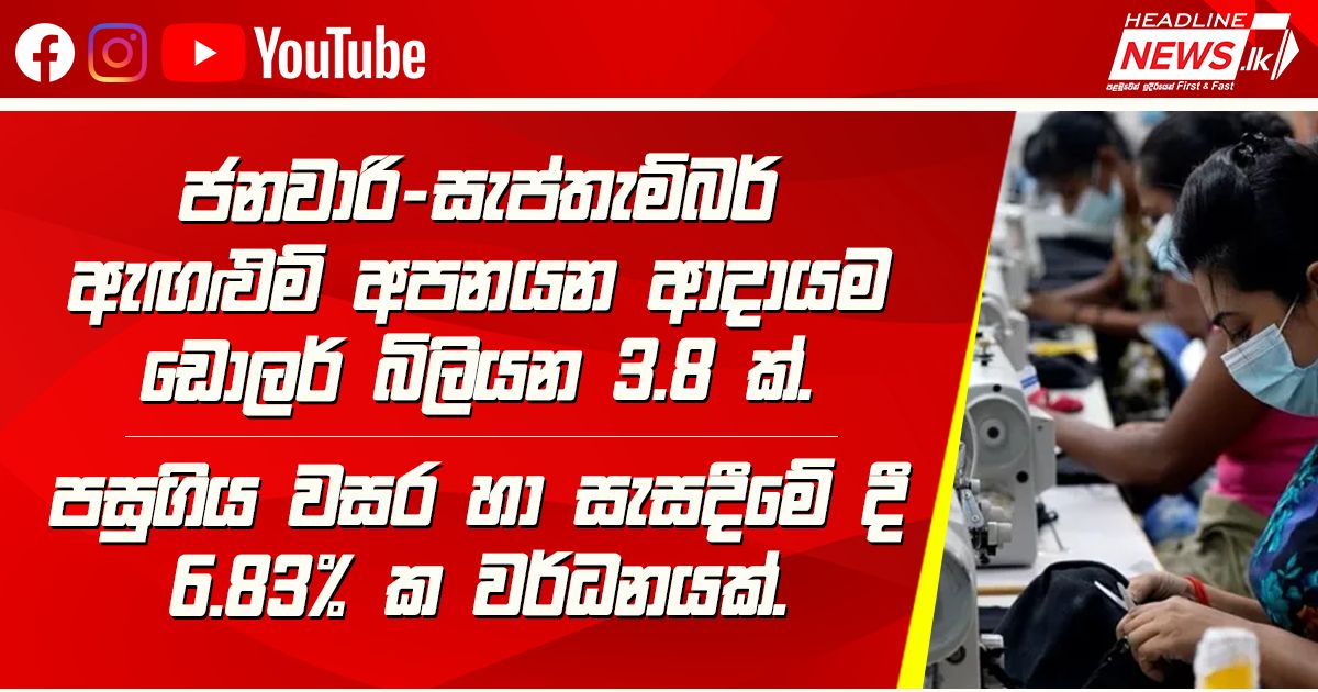ජනවාරි-සැප්තැම්බර් ඇඟළුම් අපනයන ආදායම ඩොලර් බිලියන 3.8 ක්. පසුගිය වසර හා සැසදීමේ දී 6.83% ක ව