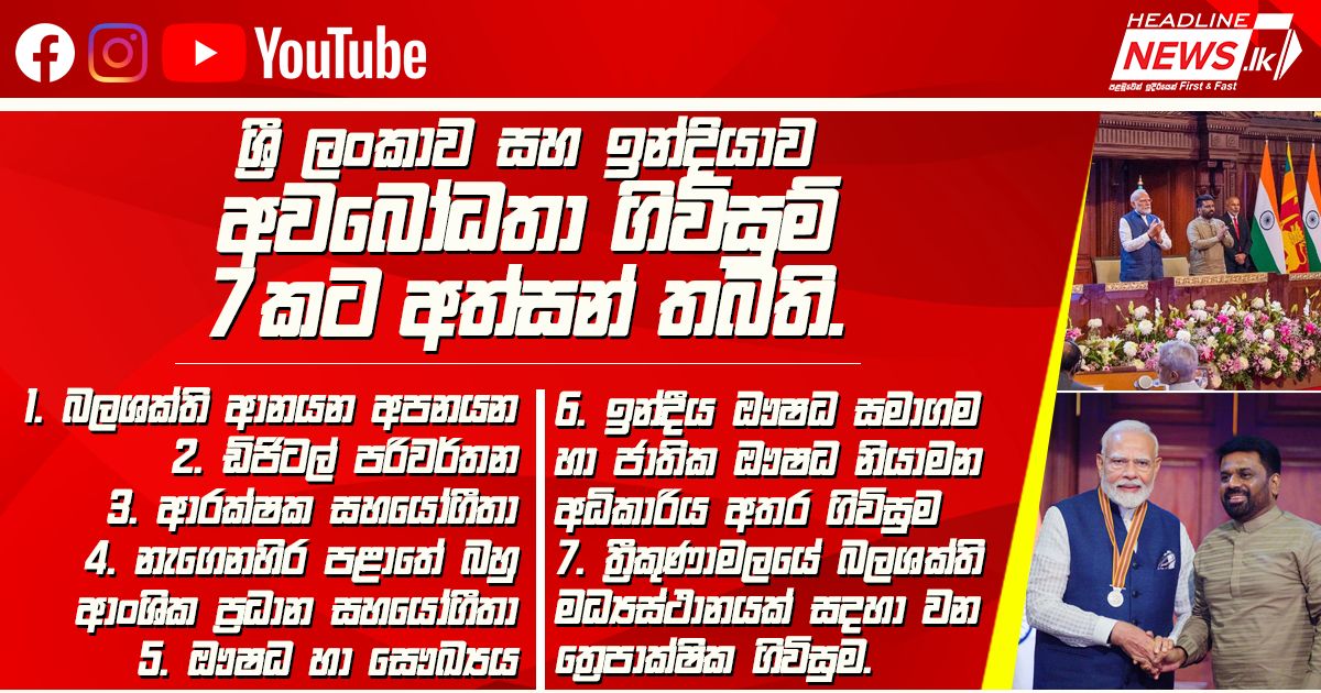 ඉන්දියාව සහ ශ්රී ලංකාව අතර අවබෝධතා ගිවිසුම් 07ක් හුවමාරු කර ගැනේ.ඉන්දියාව සහ ශ්රී ලංකාව අත