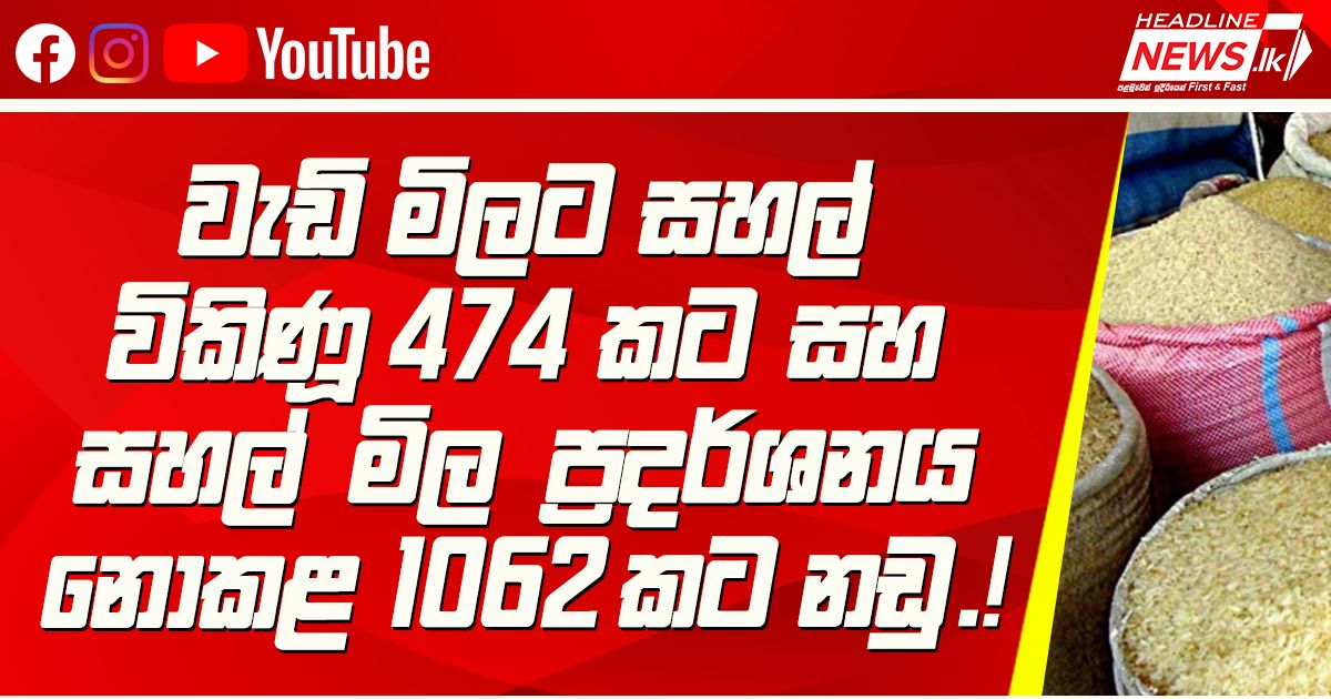 වැඩි මිලට සහල් විකිණූ 474 කට සහ සහල් මිල ප්රදර්ශනය නොකළ 1062 කට නඩු දමයි..!රජය නියම කර තිබෙන ම