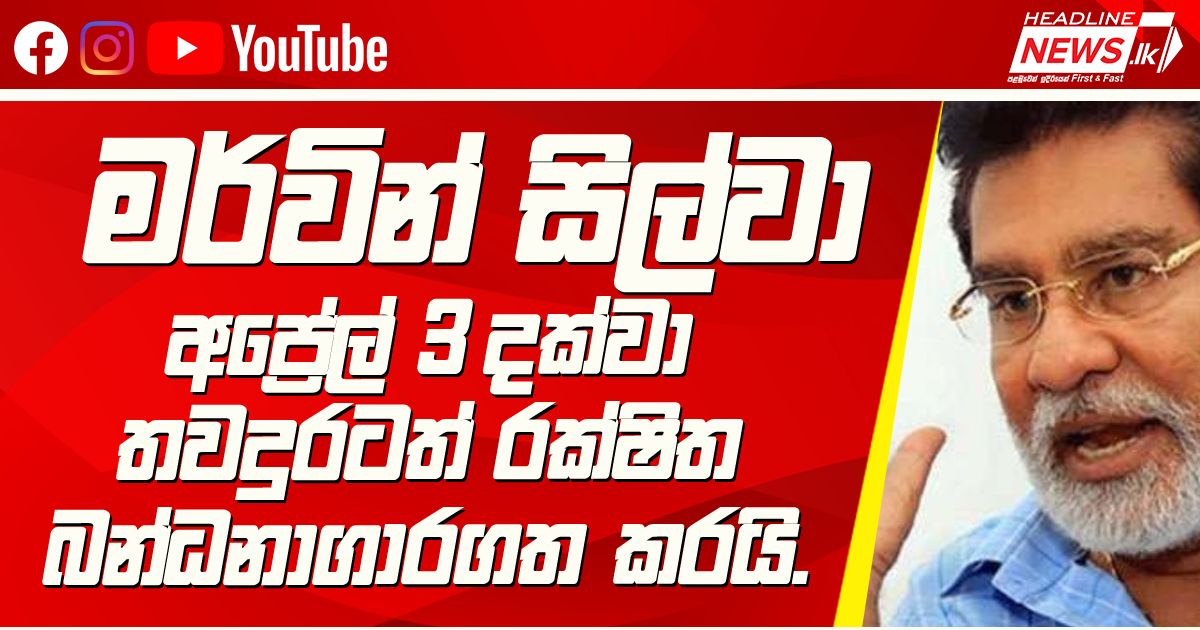 මර්වින් සිල්වා අප්රේල් 3 දක්වා තවදුරටත් රක්ෂිත බන්ධනාගාරගත කරයි. ව්යාජ ලේඛන සකස් කොට රජය