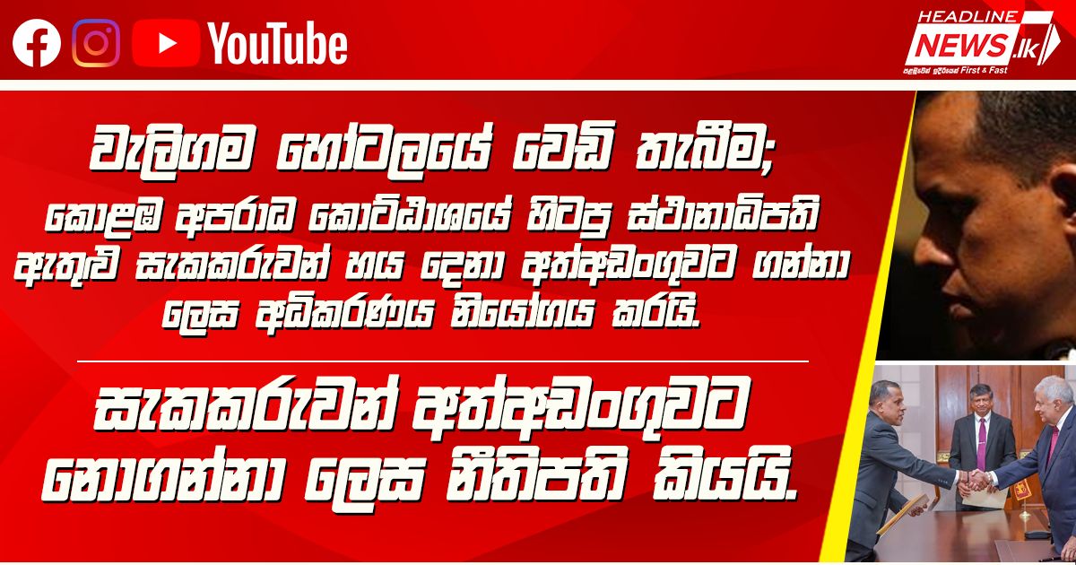 වැලිගම හෝටලයේ වෙඩි තැබීම; කොළඹ අපරාධ කොට්ඨාශයේ හිටපු ස්ථානාධිපති ඇතුළු සැකකරුවන් හය දෙනා
