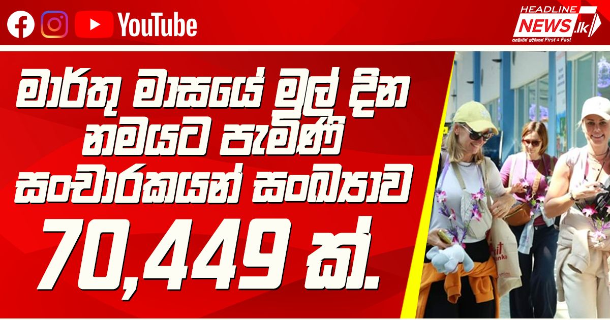 මාර්තු මාසයේ මුල් දින නමයට පැමිණි සංචාරකයන් සංඛ්යාව 70,449 ක්. මාර්තු මාසයේ මුල් දින නමය තු