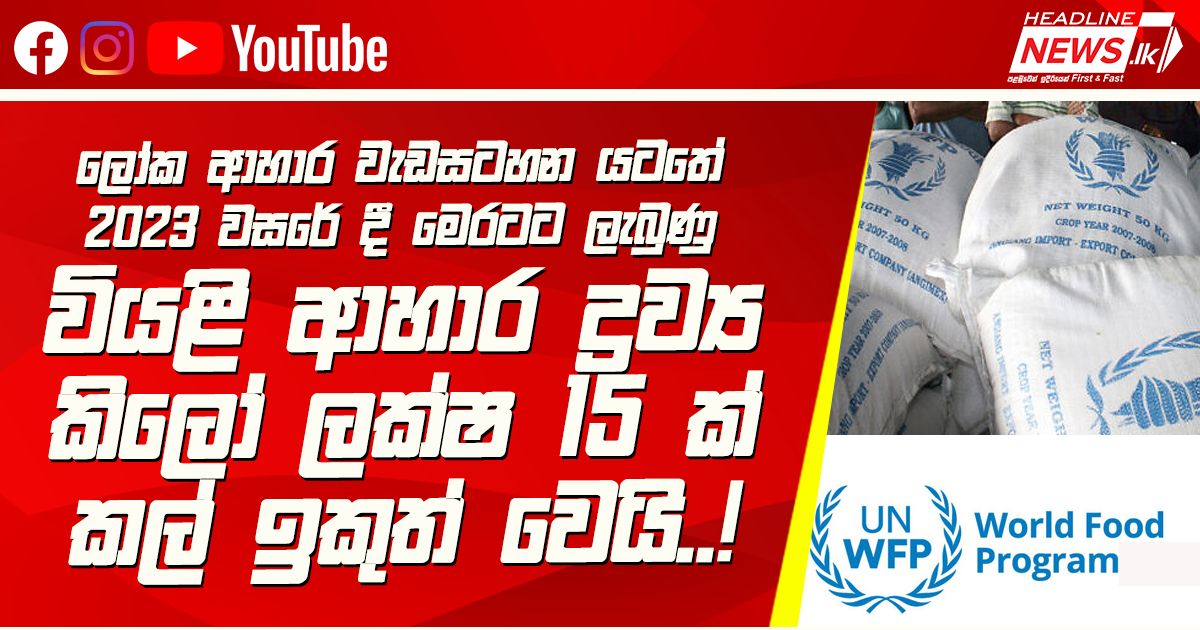 ලෝක ආහාර වැඩසටහන යටතේ 2023 වසරේ දී මෙරටට ලැබුණු වියළි ආහාර ද්රව්ය කිලෝ ලක්ෂ 15 ක් කල් ඉකුත්