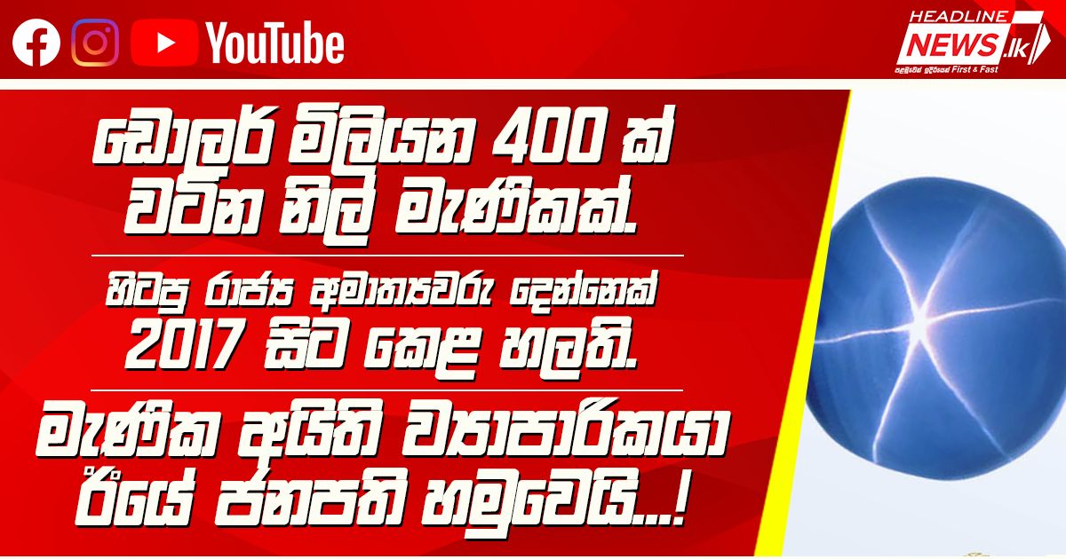 ඩොලර් මිලියන 400 ක් වටින නිල් මැණිකක්. හිටපු රාජ්ය අමාත්යවරු දෙන්නෙක් 2017 සිට කෙළ හලති. ම