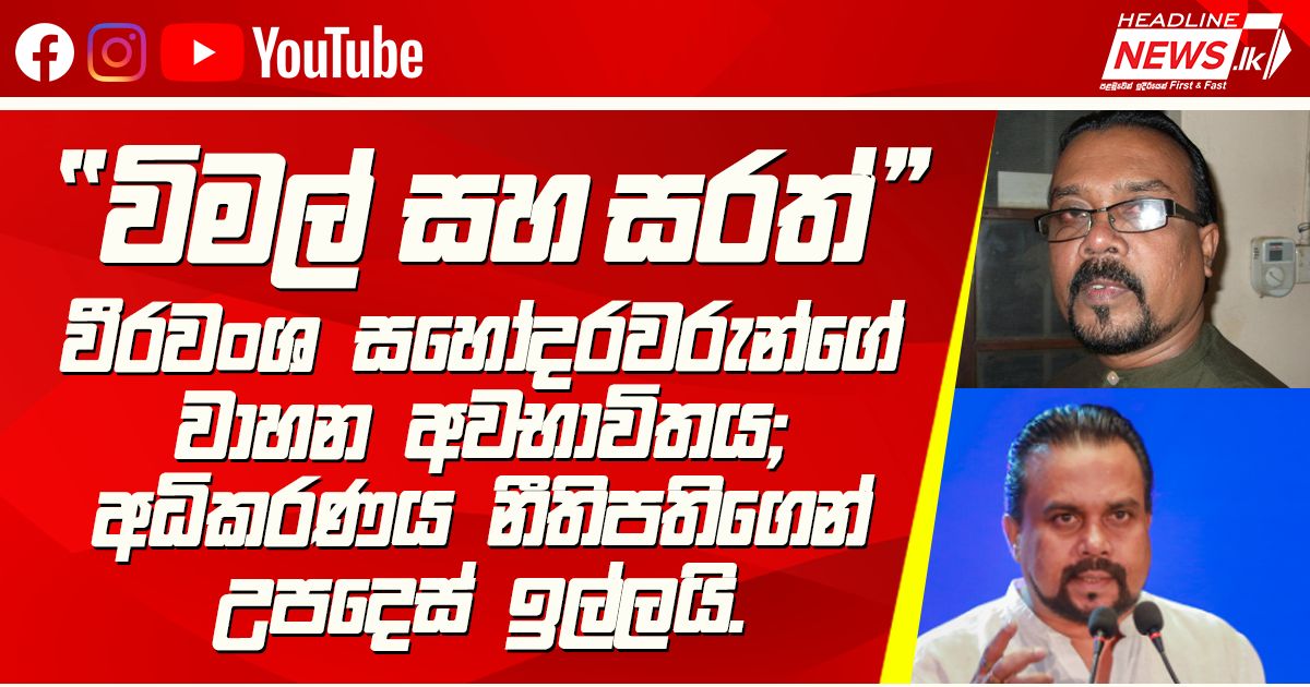 වීරවංශ සහෝදරවරුන්ගේ වාහන අවභාවිතය; අධිකරණ නීතිපතිගෙන් උපදෙස් ඉල්ලයි. විමල් වීරවංශ සහ ඔහු