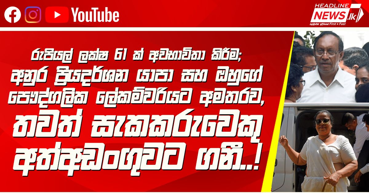 රුපියල් ලක්ෂ 61 ක් අවභාවිතා කිරීම; අනුර ප්රියදර්ශන යාපා සහ ඔහුගේ පෞද්ගලික ලේකම්වරියට අමතර