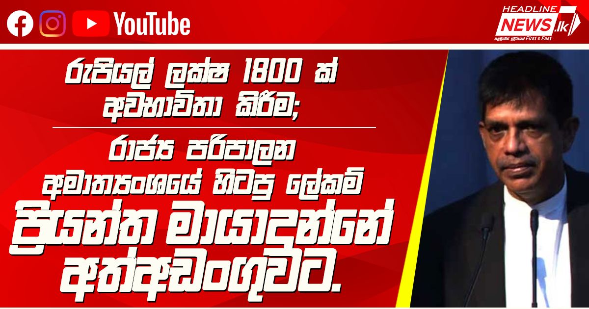 රුපියල් ලක්ෂ 1800 ක් අවභාවිතා කිරීම; රාජ්ය පරිපාලන අමාත්යංශයේ හිටපු ලේකම් ප්රියන්ත මාය