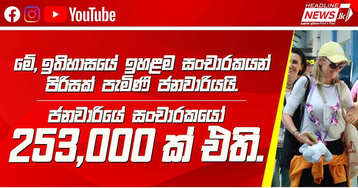 ජනවාරියේ සංචාරකයෝ 253,000 ක් එති. ඉතිහාසයේ ඉහළම සංචාරකයන් පිරිසක් පැමිණි ජනවාරිය බවට මේ ජනවාරි