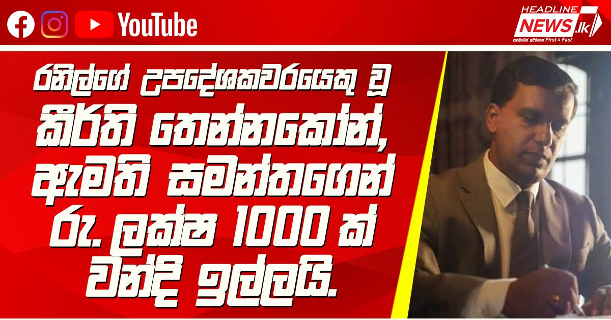 රනිල්ගේ උපදේශකවරයෙකු වූ කීර්ති තෙන්නකෝන්, ඇමති සමන්තගෙන් රුපියල් ලක්ෂ 1000 ක් වන්දි ඉල්ලය