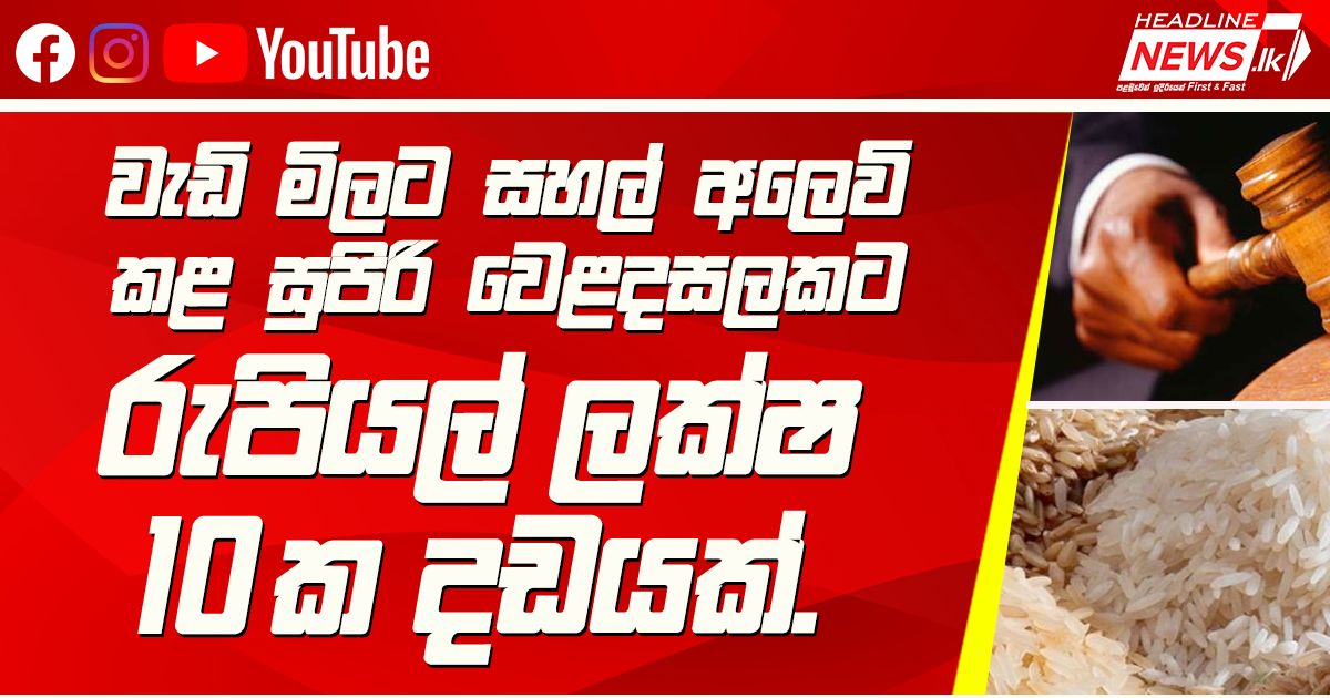 වැඩි මිලට සහල් අලෙවි කළ සුපිරි වෙළදසලකට රුපියල් ලක්ෂ 10 ක දඩයක්. දේශීය සුදු කැකුළු සහල් වැඩ