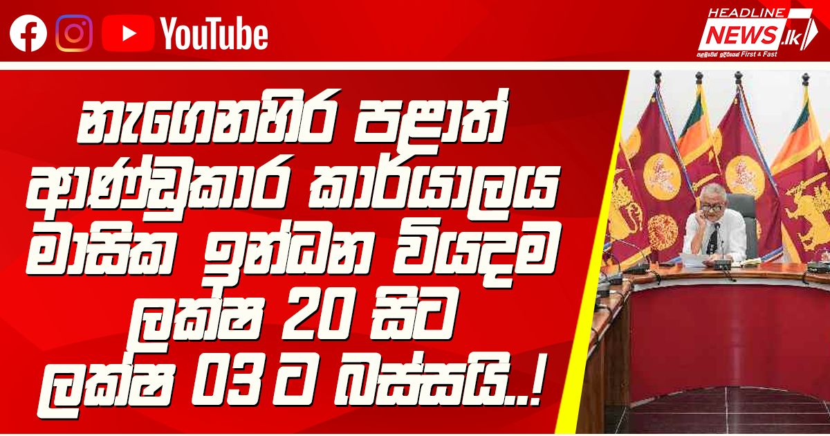 නැගෙනහිර පළාත් ආණ්ඩුකාර කාර්යාලය මාසික ඉන්ධන වියදම ලක්ෂ 20 සිට ලක්ෂ 03 ට බස්සයි..!මීට පෙර රුප