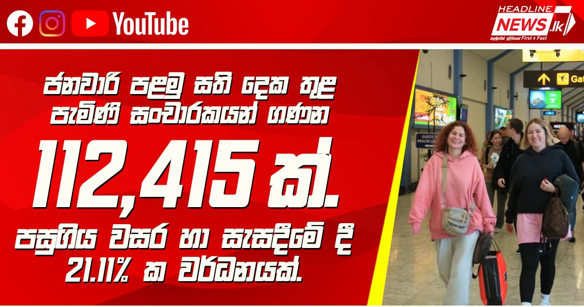 ජනවාරි පළමු සති දෙක තුළ පැමිණි සංචාරකයන් ගණන 112, 415 ක්. පසුගිය වසර හා සැසදීමේ දී 21.11% ක වර්ධ