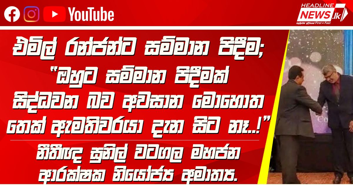එමිල් රන්ජන්ට සම්මාන පිදීම; "ඔහුට සම්මාන පිදීමක් සිද්ධවන බව අවසාන මොහොත තෙක්ම ඇමතිවරයා ද