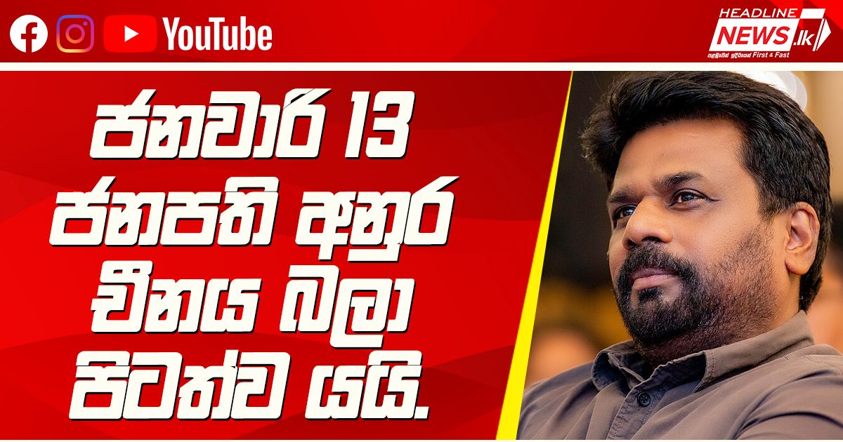 ජනවාරි 13 ජනපති අනුර චීනය බලා පිටත්ව යයි. ජනාධිපති අනුර කුමාර දිසානායක මහතා ජනවාරි මස 13 වන ද