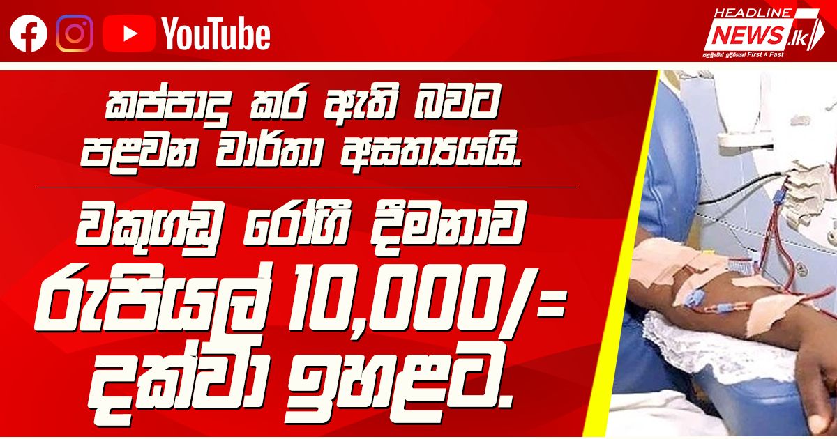 වකුගඩු රෝගී දීමනාව රුපියල් 10,000 දක්වා ඉහළට.වකුගඩු රෝගීන්ට අවශ්ය ප්රතිකාර ලබා ගැනීම සදහා ලබා