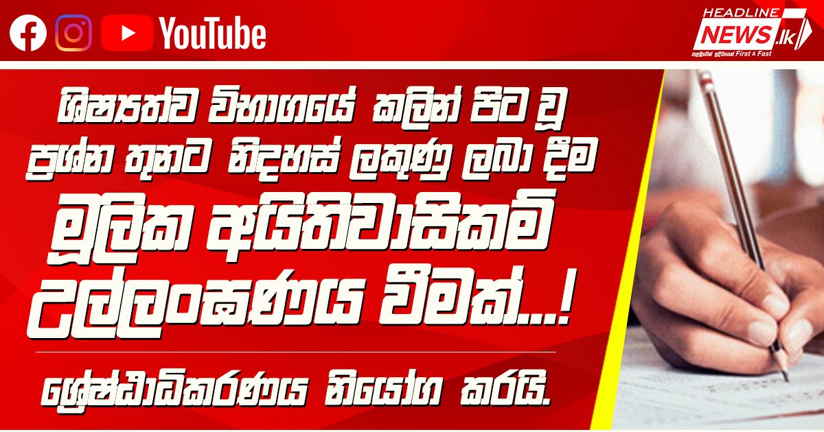 ශිෂ්යත්ව විභාගය යළි පැවැත්වීමක් නෑ..! කලින් පිට වූ ප්රශ්න තුනට සෑම දරුවෙක්ටම සමාන ලකුණු..!&n