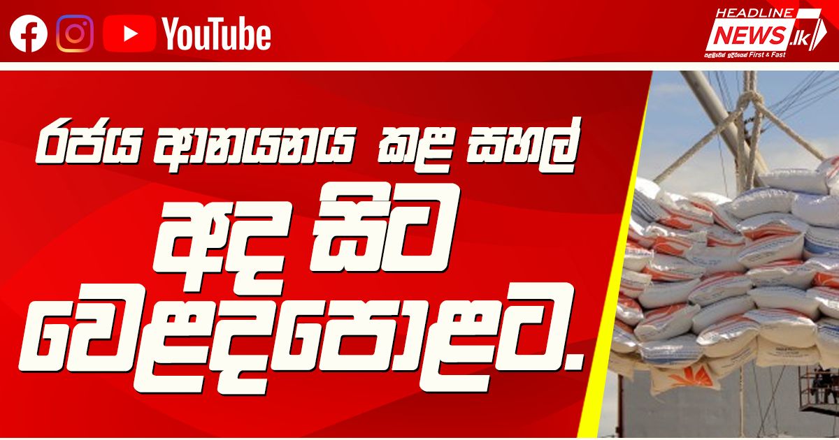 රජය ආනයනය කළ සහල් තොග අද සිට වෙළදපොළට. රජය විසින් ආනයනය කරන ලද සහල් තොග මේ වන විට දිවයිනට පැම