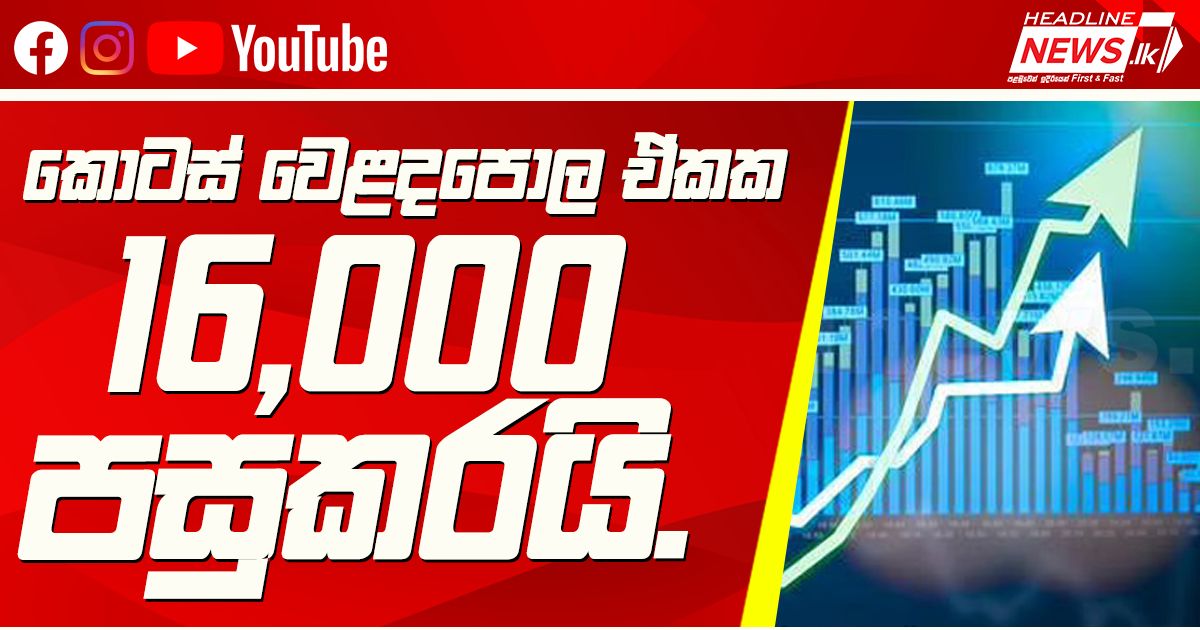 කොටස් වෙළද පොල ඒකක 16,000 පසුකරයි. කොළඹ කොටස් වෙළදපොලෙහි සියළු කොටස් මිල දර්ශකය අද ඉතිහාසයේ පළ