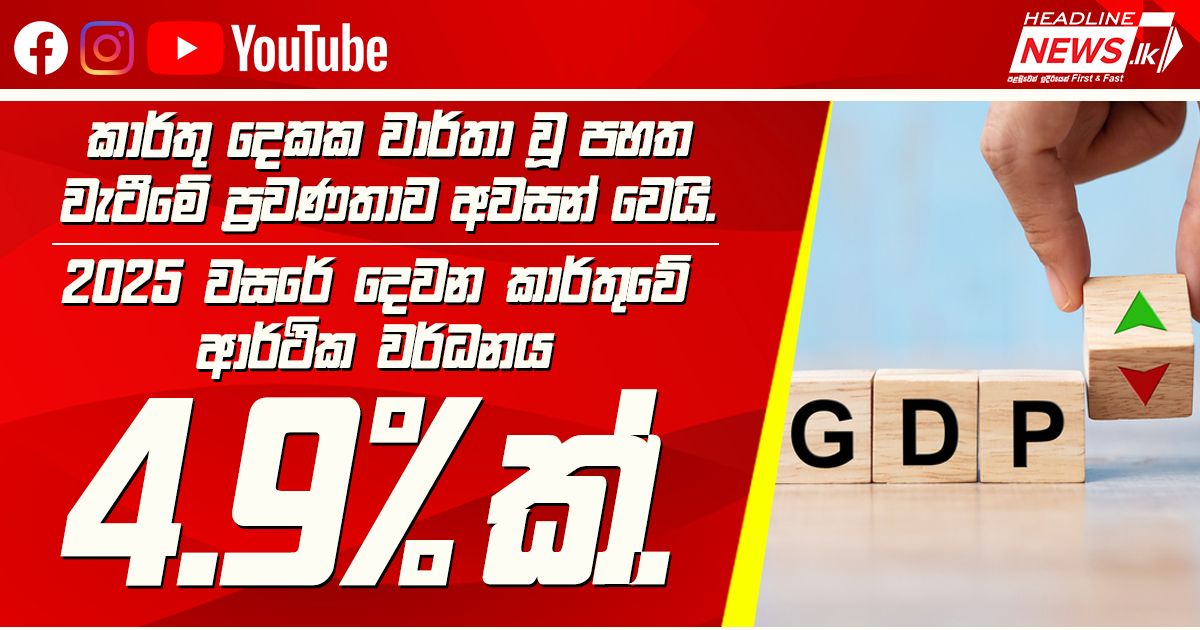 2025 වසරේ දෙවන කාර්තුවේ ආර්ථික වර්ධනය 4.9% ක්. 2025 වසරේ දෙවන කාර්තුවේ දී ශ්රී ලංකා ආර්ථිකය 4.9% ක වර්