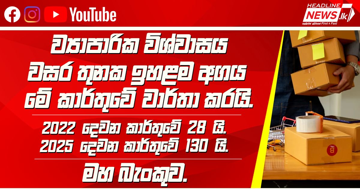 "ව්යාපාරික විශ්වාසය වසර තුනක ඉහළම අගය මේ කාර්තුවේ දී වාර්තා කරයි." ශ්රී ලංකා මහබැංකුව.