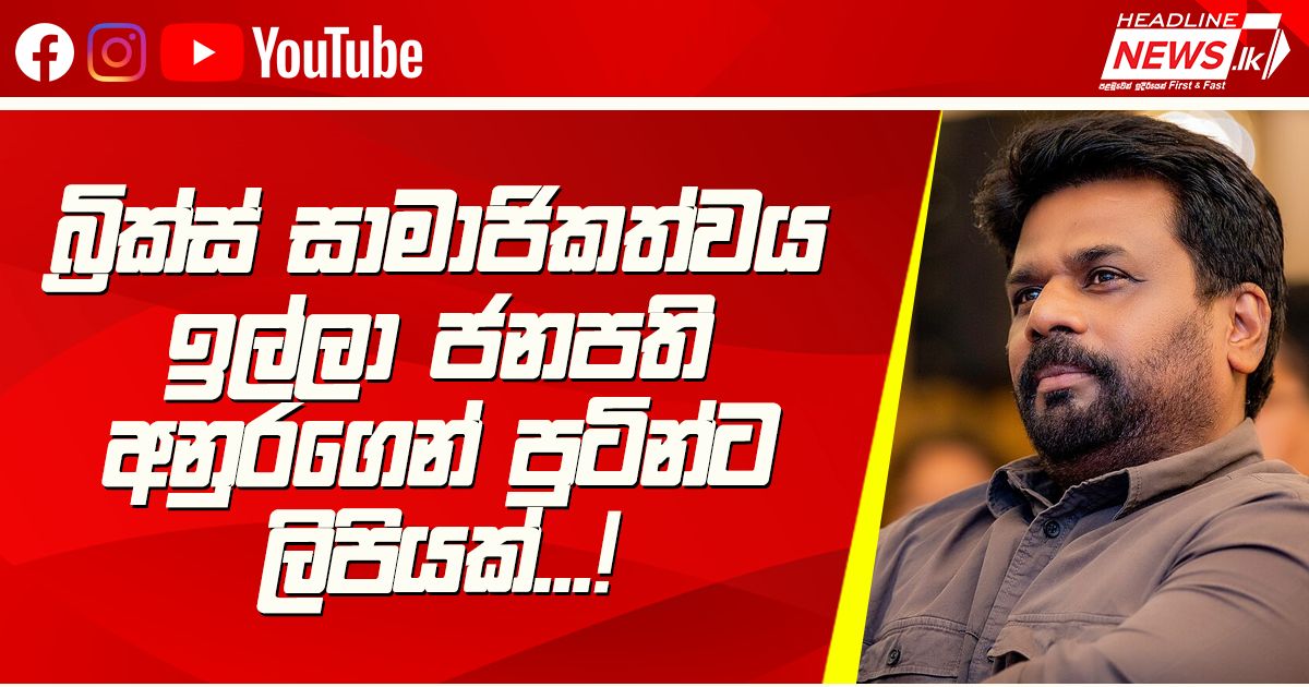 බ්රික්ස් සාමාජිකත්වය ඉල්ලා ජනපති අනුරගෙන් ජනපති පුටින්ට ලිපියක්...!බ්රික්ස් සංවිධානයේ