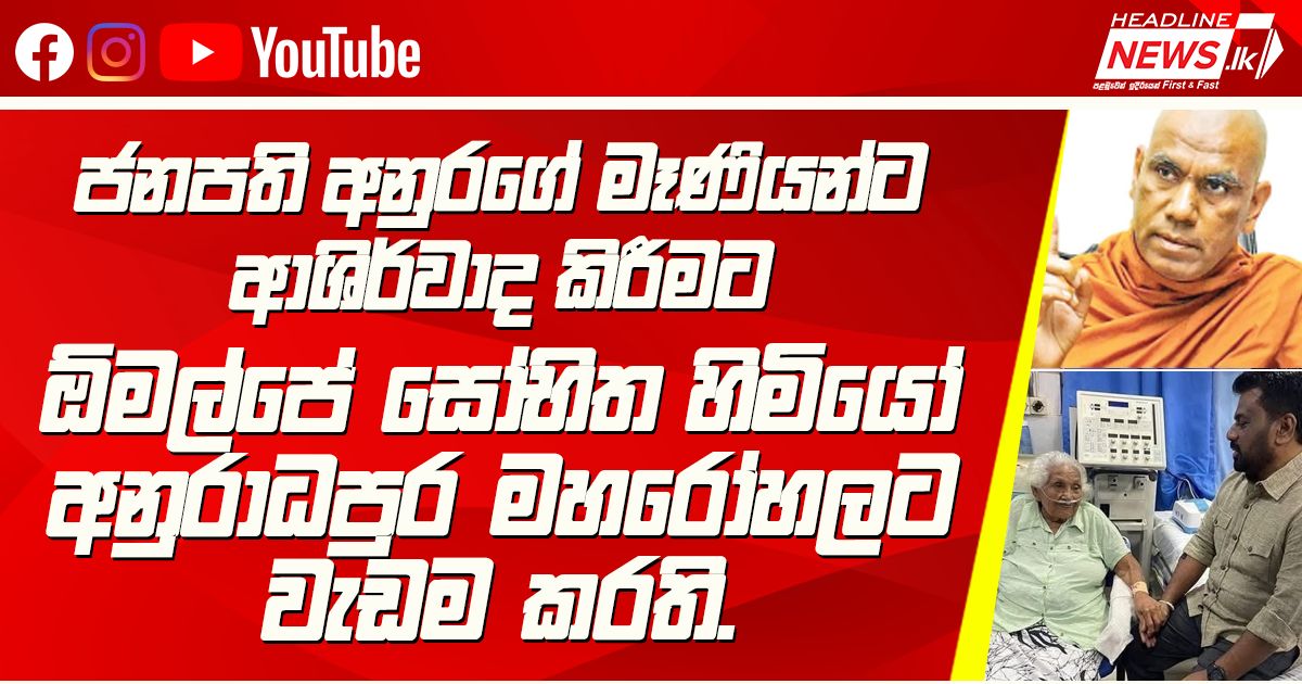 ජනපති අනුරගේ මෑණියන්ට ආශිර්වාද කිරීමට ඕමල්පේ සෝභිත හිමියෝ අනුරාධපුර මහරෝහලට වැඩම කරති.