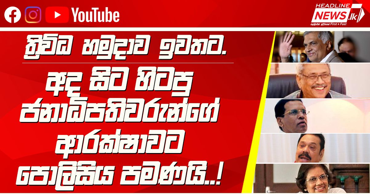 අද සිට හිටපු ජනාධිපතිවරුන්ගේ ආරක්ෂාවට පොලිසිය පමණයි..!හිටපු ජනාධිපතිවරුන්ගේ ආරක්ෂාව වෙනුව
