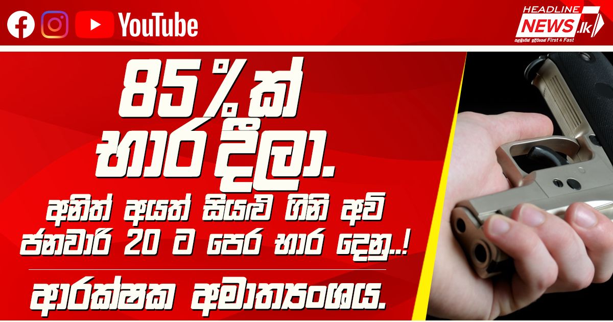 "85% ක් භාර දීලා. අනිත් අයත් සියළු ගිනි අවි ජනවාරි 20 ට පෙර භාර දෙනු..!" ආරක්ෂක අමාත්යංශය.පුද්
