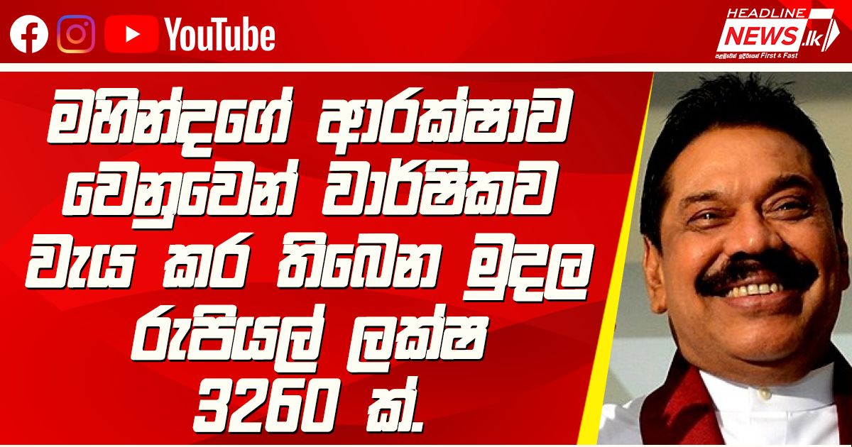 මහින්දගේ ආරක්ෂාව වෙනුවෙන් වාර්ෂිකව වැය කර තිබෙන මුදල රුපියල් ලක්ෂ 3260 ක්. හිටපු ජනාධිපතිව