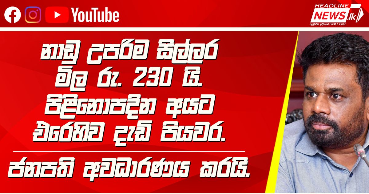 "නාඩු උපරිම සිල්ලර මිල රු. 230 යි. පිළිනොපදින අයට එරෙහිව දැඩි පියවර." ජනපති අවධාරණය කරයි. නා