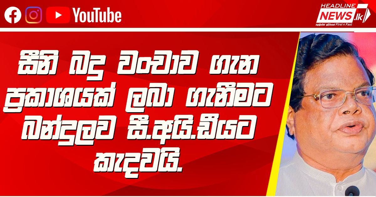 සීනි බදු වංචාව ගැන ප්රකාශයක් ලබා ගැනීමට බන්දුලව සී.අයි.ඩීයට කැදවයි. ආන්දෝලනාත්මක සීනි බ
