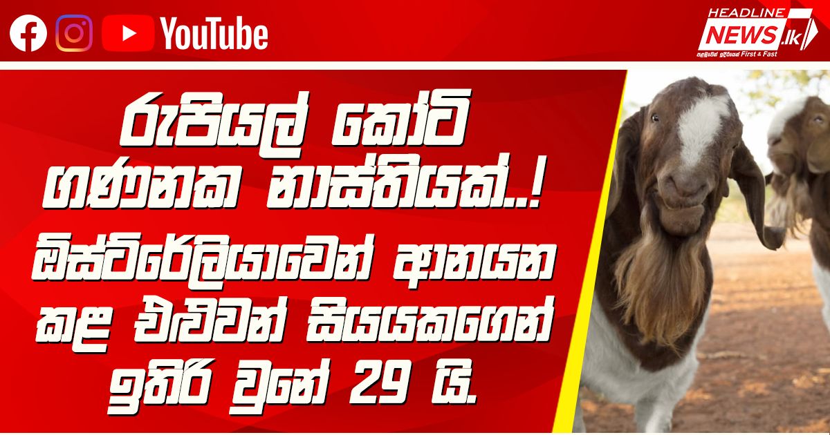 රුපියල් කෝටි ගණනක නාස්තියක්..! ඕස්ට්රේලියාවෙන් ආනයන කළ එළුවන් සියයකගෙන් ඉතිරි වුනේ 29 යි. උ