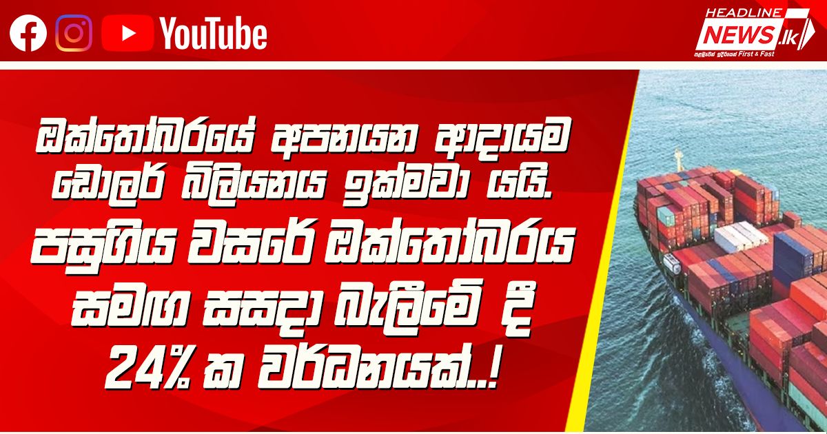 ඔක්තෝබරයේ අපනයන ආදායම ඩොලර් බිලියනය ඉක්මවා යයි. පසුගිය වසරේ ඔක්තෝබරය සමඟ සසදා බැලීමේ දී 2