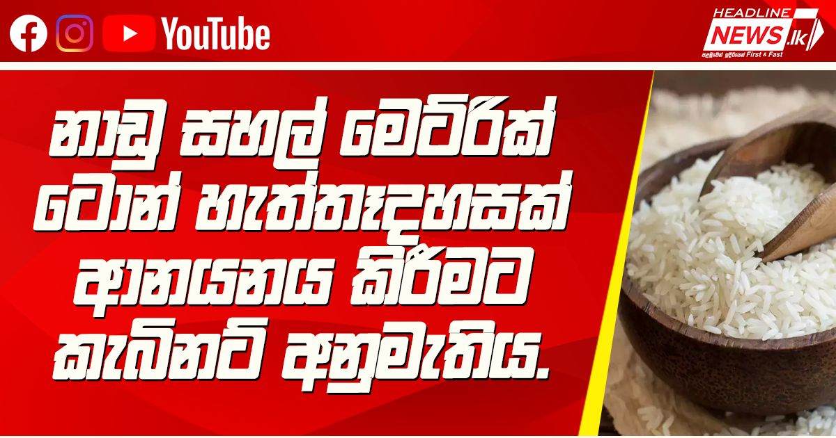 නාඩු සහල් මෙට්රික් ටොන් හැත්තෑදහසක් ආනයනය කිරීමට කැබිනට් අනුමැතිය.නාඩු සහල් මෙට්රික් ටොන්