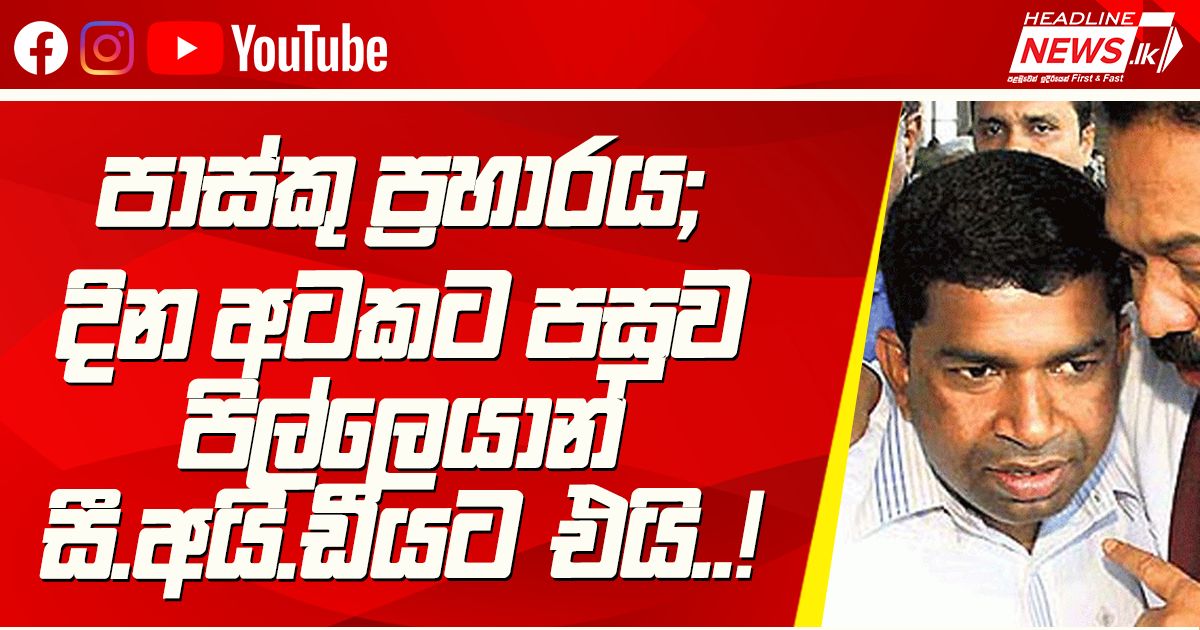 පාස්කු ප්රහාරය; දින අටකට පසුව පිල්ලෙයාන් සී.අයි.ඩීයට එයි..! පාස්කු ප්රහාරය සම්බන්ධයෙන්