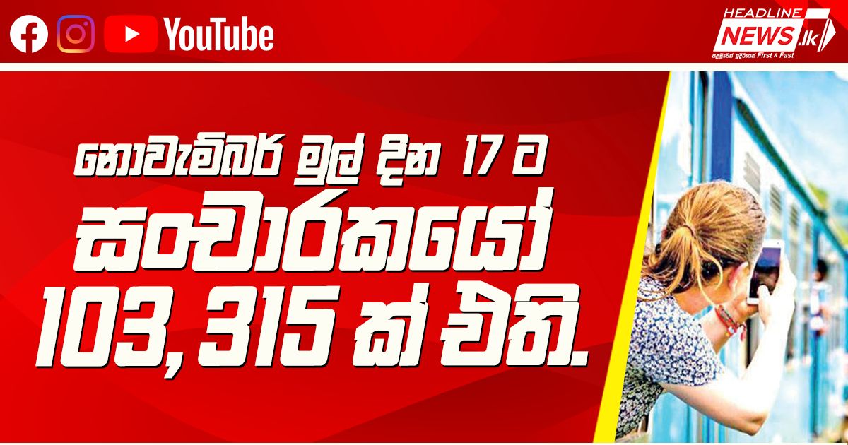 නොවැම්බර් මුල් දින 17 ට සංචාරකයෝ 103, 315 ක් එති. නොවැම්බර් මාසයේ ගෙවුණු දින දා හත ත-ුළදී විදේශීය ස