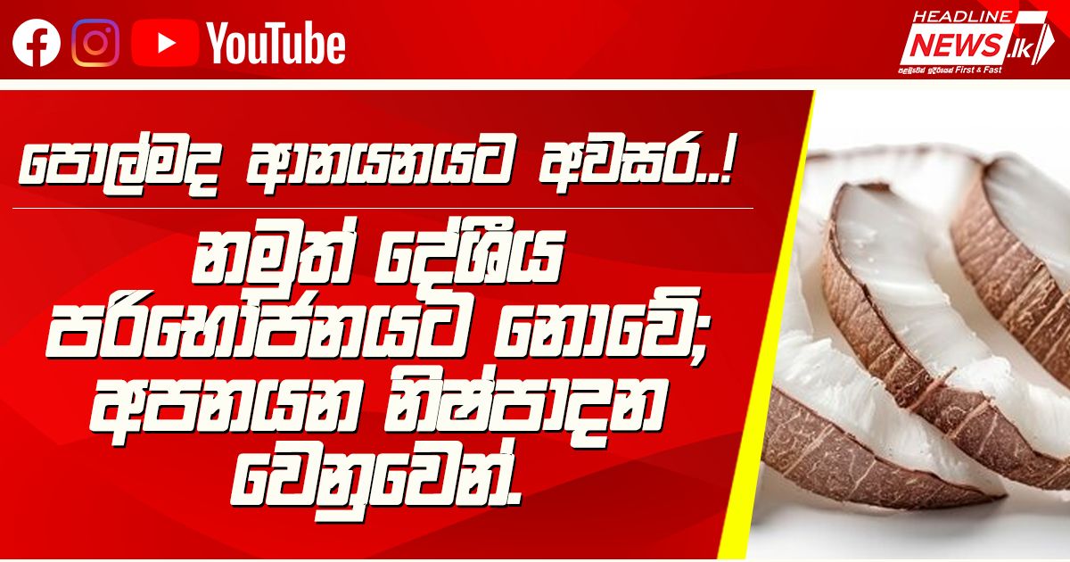 පොල්මද ආනයනයට අවසර..! නමුත් දේශීය පරිභෝජනයට නොවේ; අපනයන නිෂ්පාදන වෙනුවෙන්. රජය පොල්මද ආ