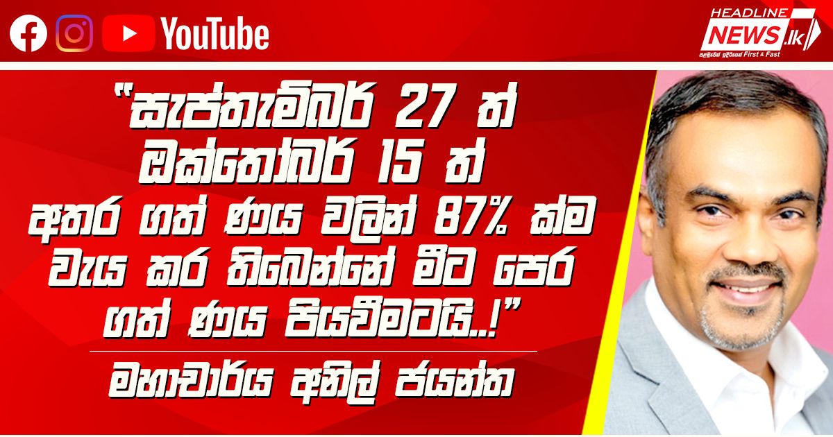 “සැප්තැම්බර් 27 ත් ඔක්තෝබර් 15 ත් අතර ගත් ණය වලින් 87% ක්ම වැය කර තිබෙන්නේ මීට පෙර ගත් ණය පියවී
