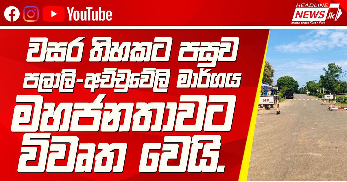 වසර තිහකට පසුව පලාලි-අච්චුවේලි මාර්ගය මහජනතාවට විවෘත වෙයි. වසර තිහකට ආසන්න කාලයක් වසා දම
