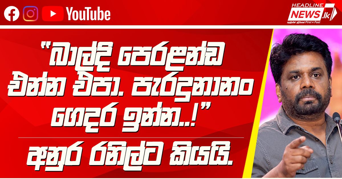 “බාල්දි පෙරළන්ඩ එන්න එපා. පැරදුනානං ගෙදර ඉන්න..!" අනුර රනිල්ට කියයි. පරාජිත ජනාධිපති රනිල්