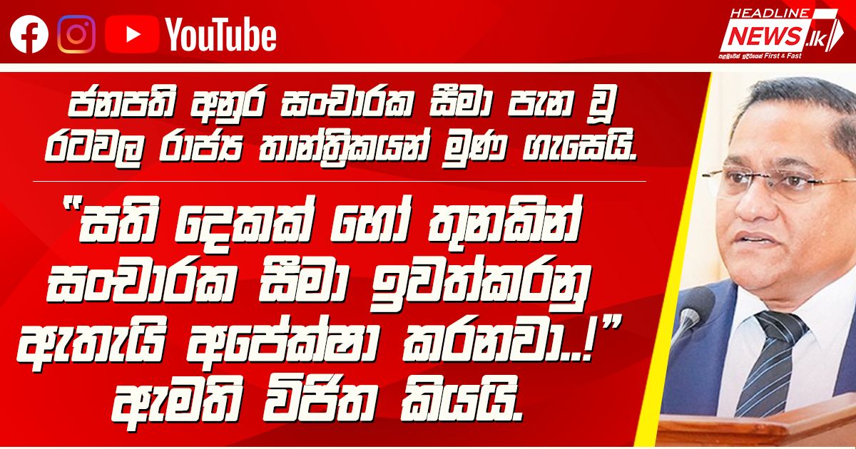 "සති දෙකක් හෝ තුනකින් සංචාරක සීමා ඉවත්කරනු ඇතැයි අපේක්ෂා කරනවා..!" ඇමති විජිත කියයි. ඊශ්