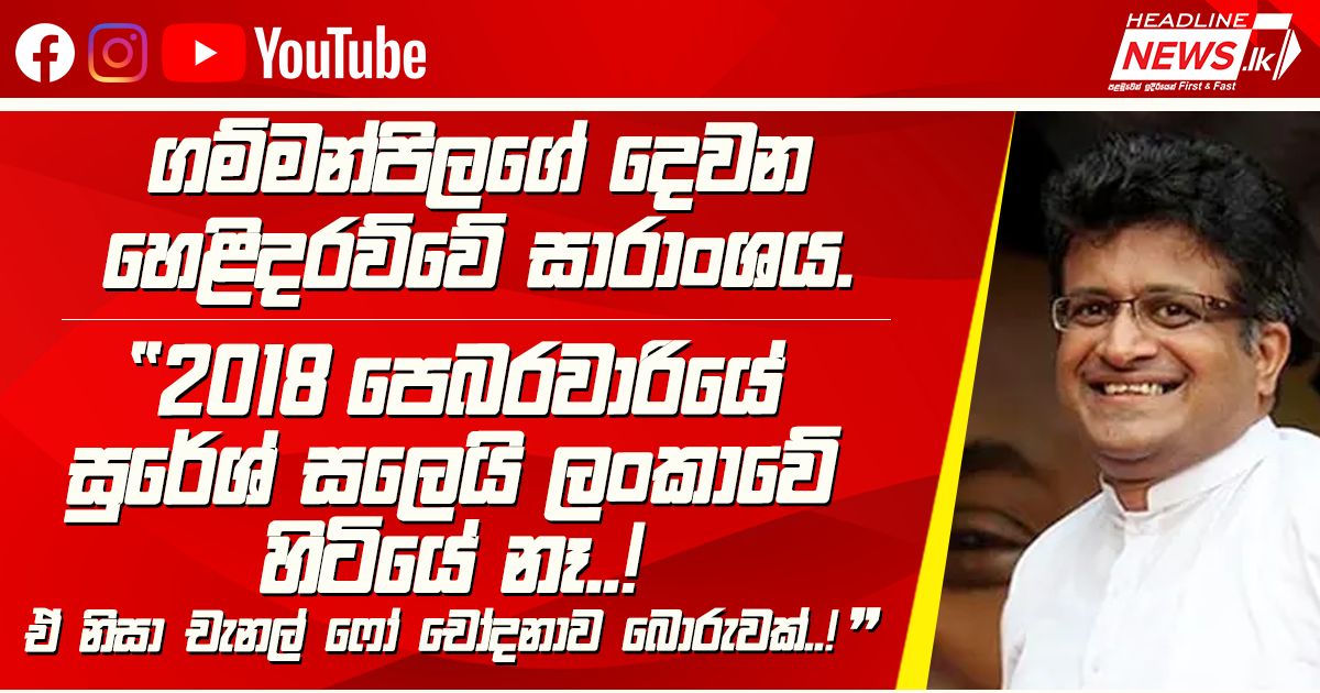 ගම්මන්පිලගේ දෙවන හෙළිදරව්වේ සාරාංශය; 2018 පෙබරවාරියේ සුරේශ් සලෙයි ලංකාවේ හිටියේ නෑ..! ඒ න