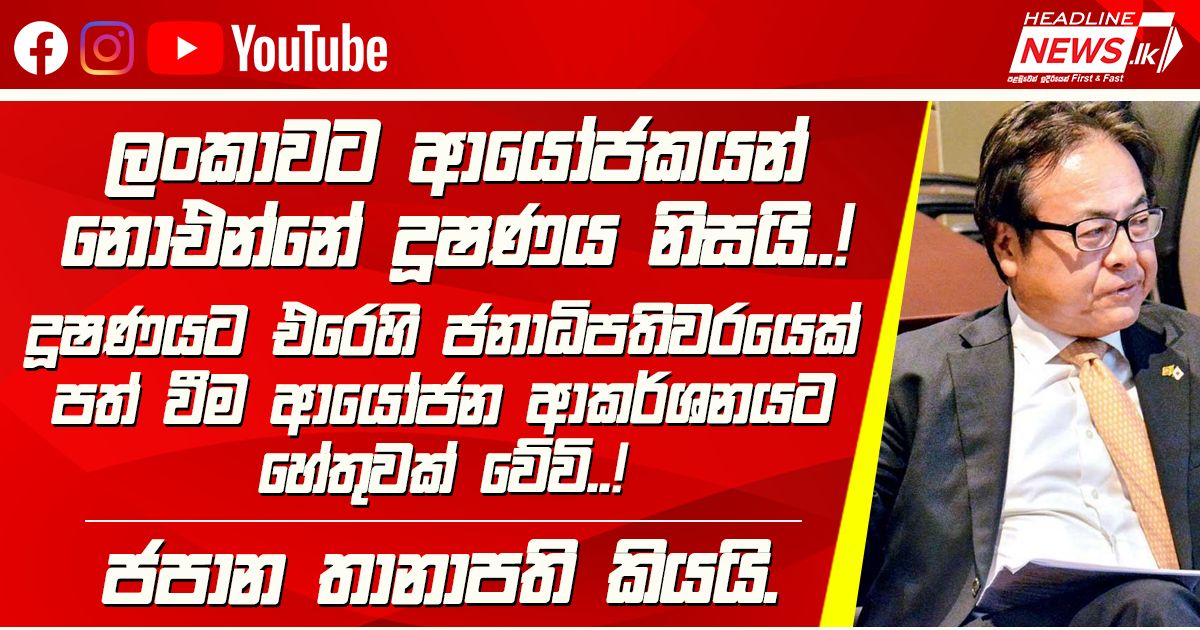 "ලංකාවට ආයෝජකයන් නොඑන්නේ දූෂණය නිසයි..!" ජපාන තානාපති කියයි. ලංකාවට ආයෝජකයක් නොඒමට ප්රධා