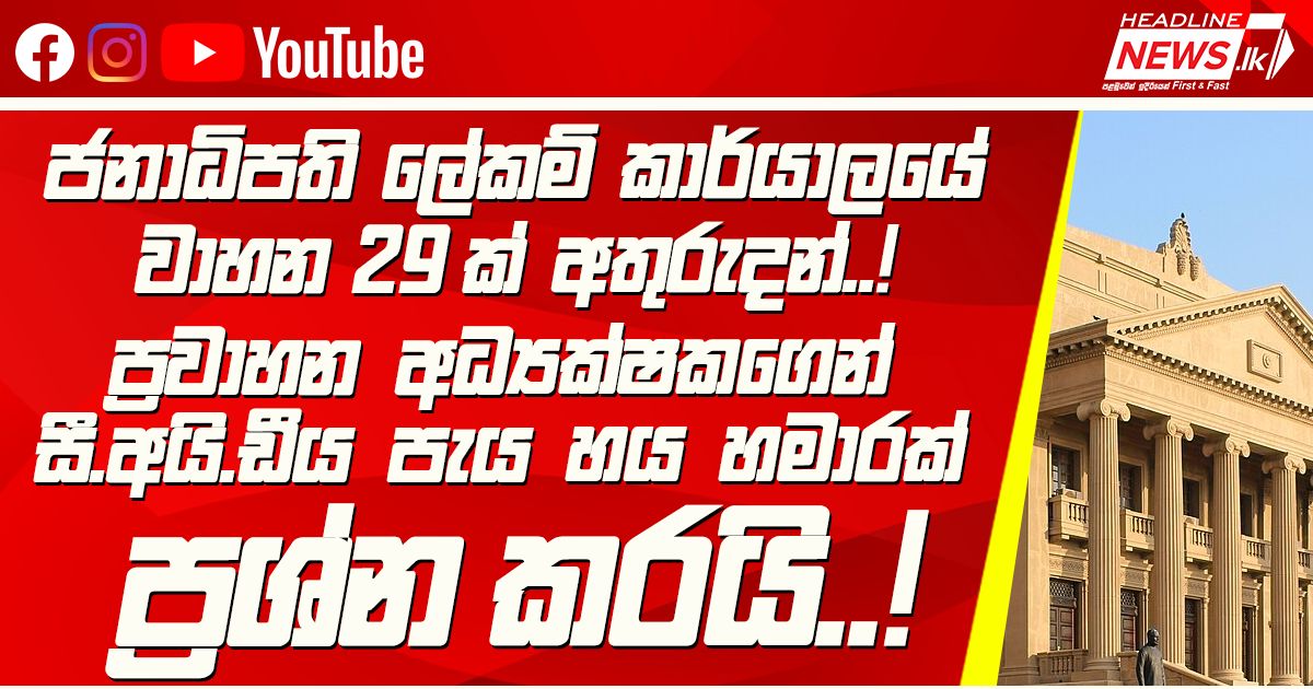 ජනාධිපති ලේකම් කාර්යාලයේ වාහන 29 ක් අතුරුදන්..! ජනාධිපති ලේකම් කාර්යාලය භාරයේ පැවති වාහන 29 ක්