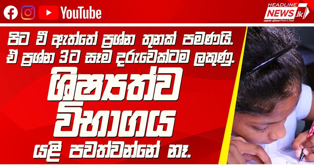 "ප්රශ්න පත්රය කලින් පිට වූ ශිෂ්යත්ව විභාගයේ ප්රතිඵල අත්හිටුවන්න..!" ශ්රේෂ්ඨාධිකරණය