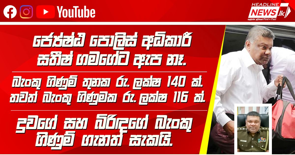 ජ්යේෂ්ඨ පොලිස් අධිකාරී සතීෂ් ගමගේට ඇප නෑ. අල්ලස් හෝ දූෂණ චෝදනා විමර්ශන කොමිෂන් සභාව මගින්
