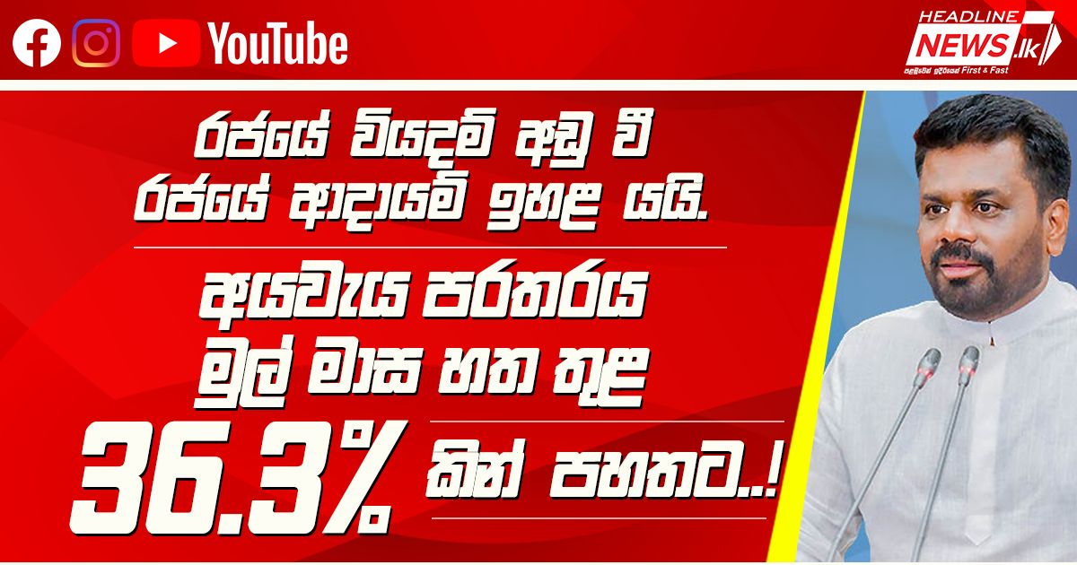 රජයේ වියදම් අඩු වී රජයේ ආදායම් ඉහළ යයි. අයවැය පරතරය මුල් මාස හත තුළ 36.3% කින් පහතට..!මේ වසරේ මු