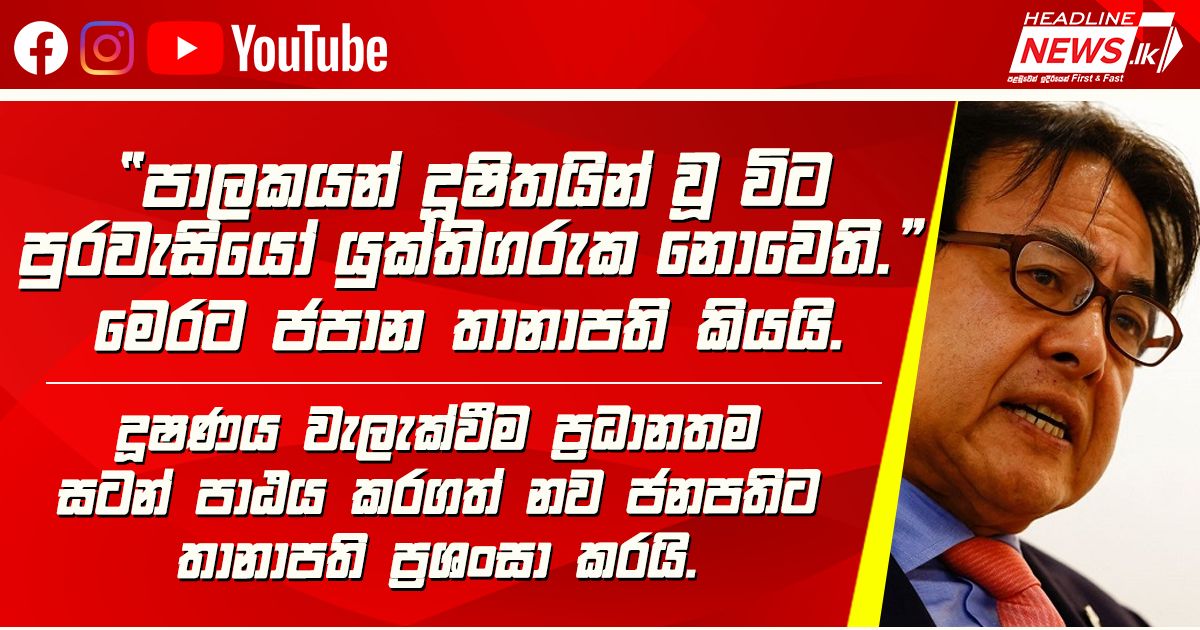 “පාලකයන් දූෂිතයින් වූ විට පුරවැසියෝ යුක්තිගරුක නොවෙති.” මෙරට ජපාන තානාපති කියයි. ලංකාවේ