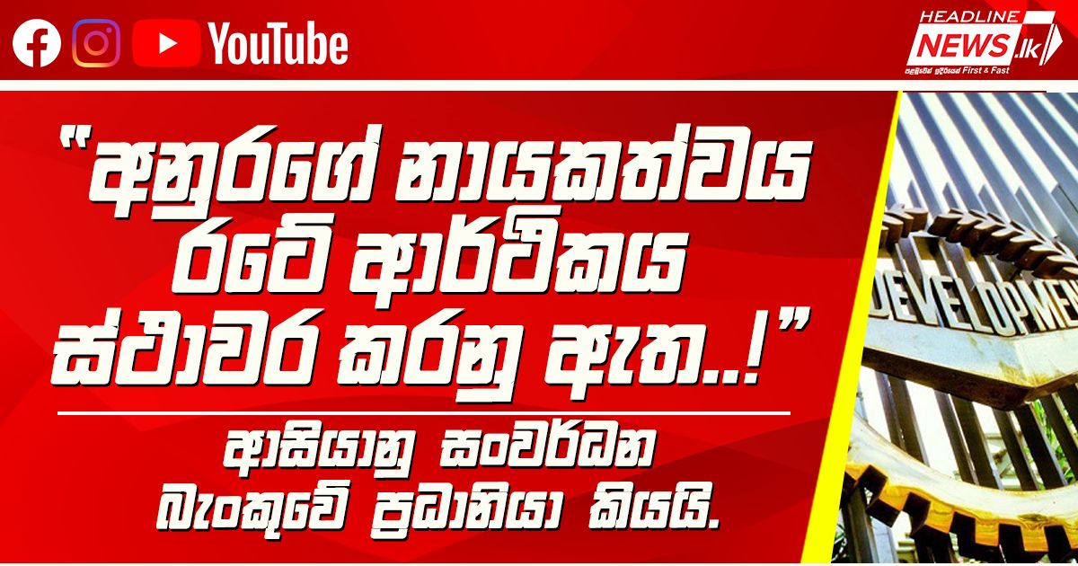 “ අනුරගේ නායකත්වය රටේ ආර්ථිකය ස්ථාවර කරනු ඇත..!” ආසියානු සංවර්ධන බැංකුවේ ප්රධානියා කියයි.&n